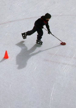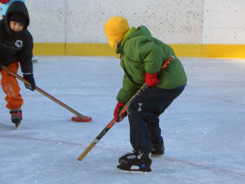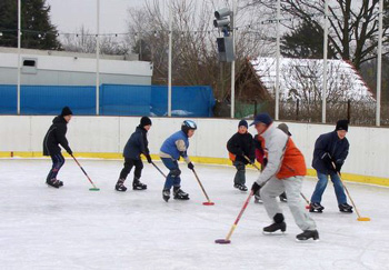 Ringhockey ist ein Spiel, das dem Eishockey ähnlich ist. Da wir einen Ring über das Eis führen und nicht einen Puck schießen, wird es für die Kinder leichter, das Spiel zu kontrollieren und den Ring zu beherrschen. Als Schutzkleidung empfehlen wir einen Fahrradhelm - das Anerkennen von Sicherheitsregeln ist zwingend notwendig.